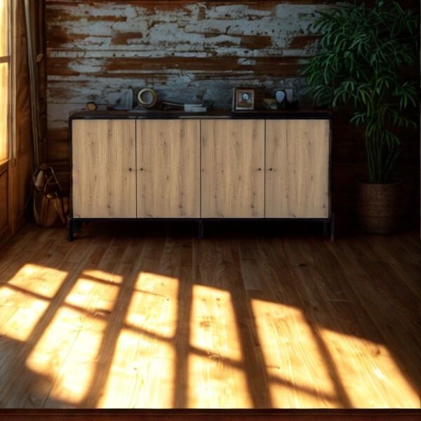 Comoda cu 4 uși Ravi de la Idźczak este o combinație elegantă de utilitate și modernitate, perfectă pentru interioarele contemporane.