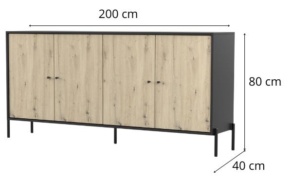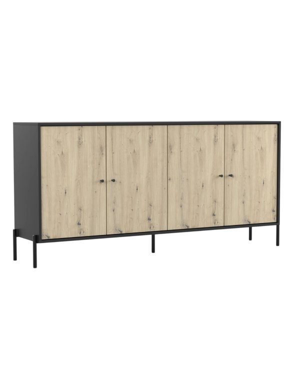 Dotată cu patru uși în spatele cărora se află multiple rafturi, comoda oferă un spațiu de depozitare foarte practic pentru haine, documente, veselă sau alte obiecte.