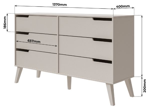 Comoda cu 6 sertare Nordelo cașmir de la Karol este spațioasă, inspirată din stilul Mid-Century Modern și construită pentru a rezista în timp.