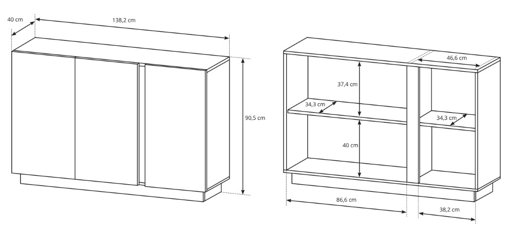 În spatele ușilor cu oglindă se află o bară pentru umerașe, astfel încât să îți poți agăța hainele în mod ordonat și îngrijit. Sub acestea sunt două sertare încăpătoare pentru accesorii sau așternuturi. Cealaltă secțiune este formată din două uși cu balamale și 10 rafturi interioare pentru organizarea inteligentă a obiectelor stocate.