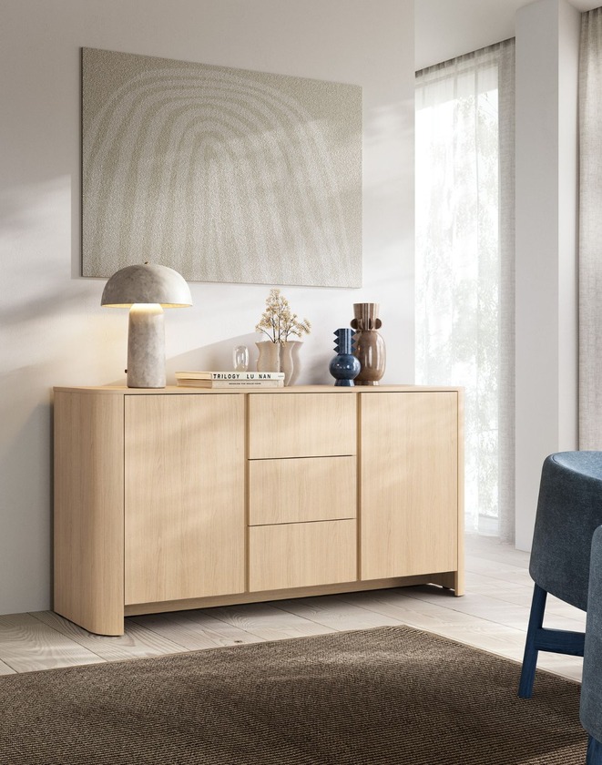 Comoda Bari stejar vicenza de la Piaski este o soluție elegantă de depozitare pentru sufragerie, dormitor sau birou, combinând aspectul modern cu funcționalitatea.