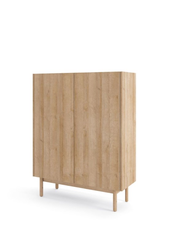 Comoda îmbină aspectul inedit cu funcționalitatea, având un compartiment cu trei rafturi interioare și sistem de deschidere-închidere a ușilor fără mâner.