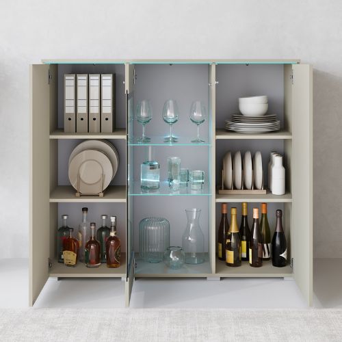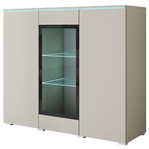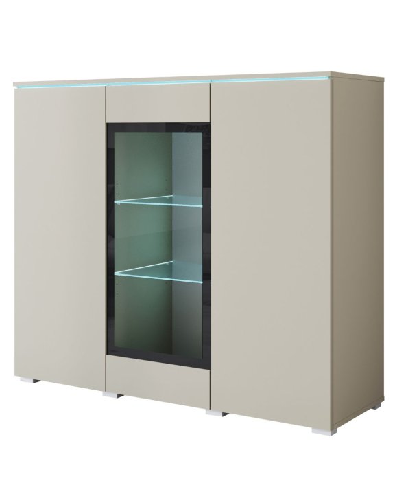 Este o piesă de mobilier ce captează atenția atât în timpul zilei, cât și după lăsarea întunericului, datorită iluminării delicate cu LED (opțională) care pune în evidență conținutul secțiunii cu sticlă, devenind un punct central elegant în orice sufragerie sau dining.