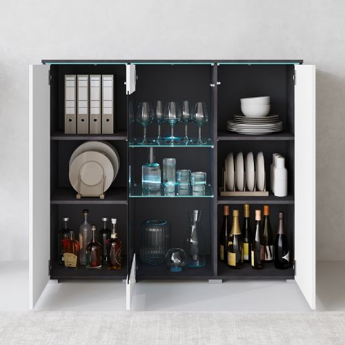 Este o piesă de mobilier ce captează atenția atât în timpul zilei, cât și după lăsarea întunericului, datorită iluminării delicate cu LED (opțională) care pune în evidență conținutul secțiunii cu sticlă, devenind un punct central elegant în orice sufragerie sau dining.