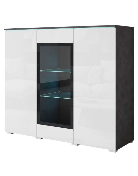 | Comodă cu geam Vera, matera/alb lucios (120 cm) | 1179 RON |