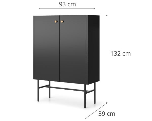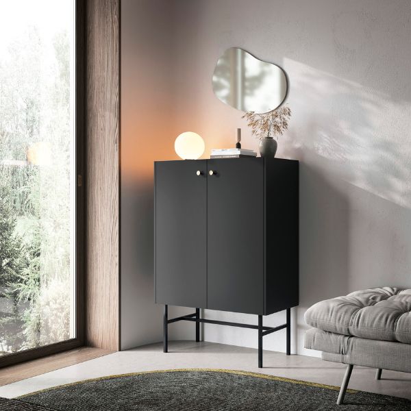 Comoda înaltă Diva neagră de la Karol combină rafinamentul modern cu funcționalitatea, oferind un spațiu dedicat și organizat pentru diverse obiecte.