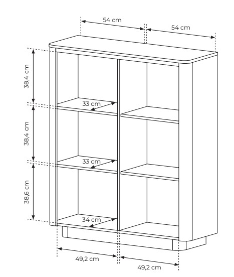 Oferă un spațiu amplu de depozitare, având o secțiune deschisă cu rafturi și un compartiment cu două uși și rafturi interioare, ceea ce o face ideală pentru expunerea cărților sau a decorațiunilor și pentru ascunderea documentelor.