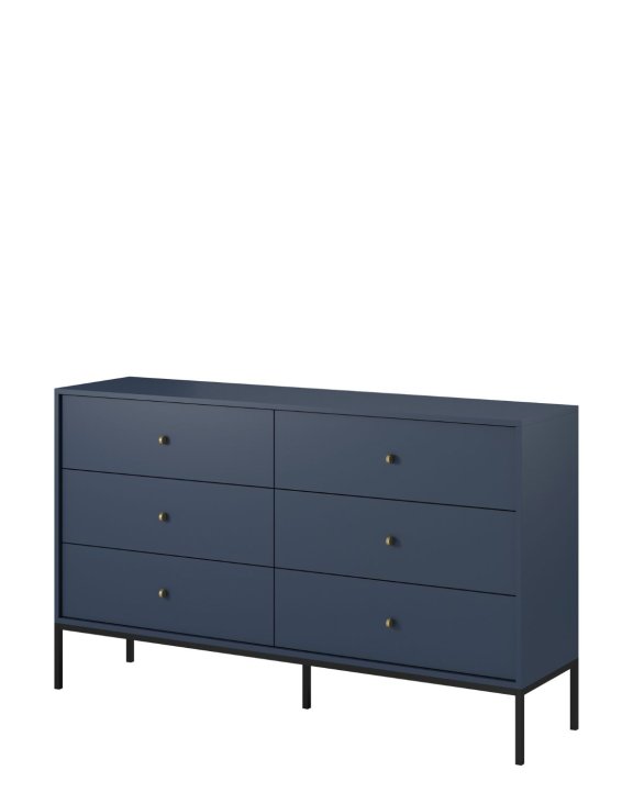 Comoda Mono albastru marin cu sertare de la Piaski este o piesă de mobilier elegantă și funcțională, perfectă atât pentru dormitor, cât și pentru camera de zi.