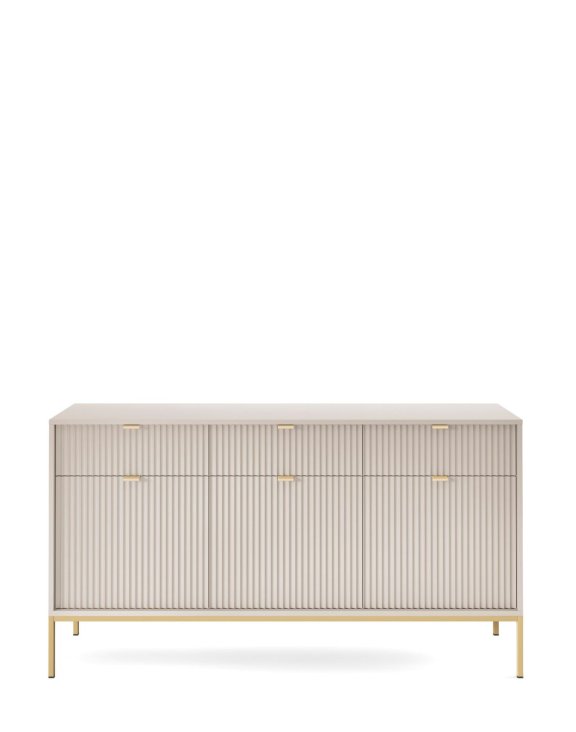 Comoda Nova cașmir (L) de la Piaski este o piesă de mobilier elegantă și funcțională, perfectă pentru amenajările interioare moderne.
