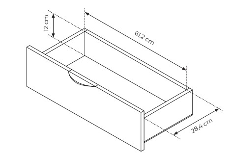 Piesa este dotată cu numeroase rafturi asimetrice pentru expunerea cărților și a obiectelor decorative, precum și cu două sertare încăpătoare cu extensie completă, ideale pentru depozitarea obiectelor de mici dimensiuni.