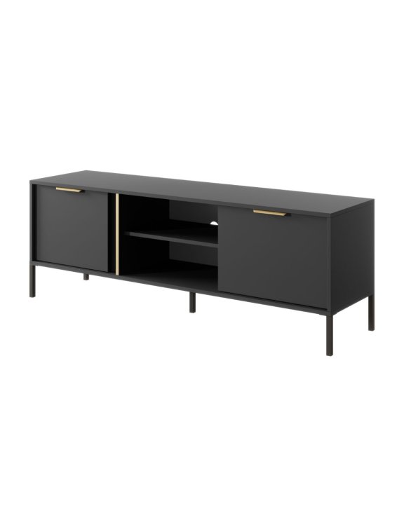 Comodă TV cu 2 uși și 2 rafturi deschise Lars, antracit/auriu (153 cm)