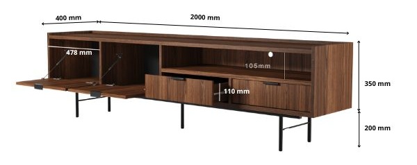 - Utilitate sporită - două compartimente spațioase, două sertare practice și un raft deschis permit depozitarea convenabilă a dispozitivelor multimedia.