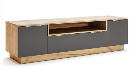 Comoda TV cu 2 uși, 3 sertare și un raft Luna de la MiroMark este o piesă de mobilier elegantă și practică, care te va ajuta să îți organizezi în mod eficient sufrageria, dormitorul, camera de oaspeți sau home cinema-ul.