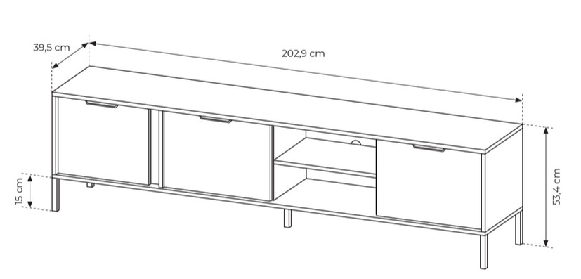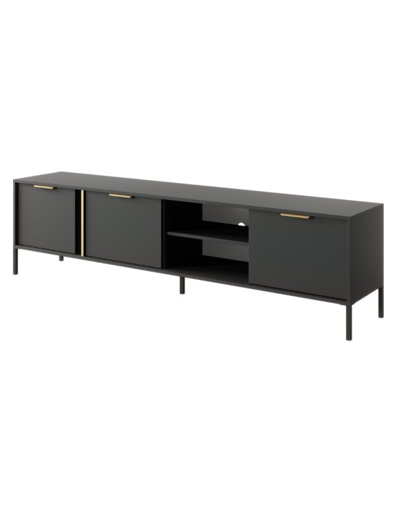 Comodă TV cu 3 uși și 2 rafturi deschise Lars, antracit/auriu (203 cm)