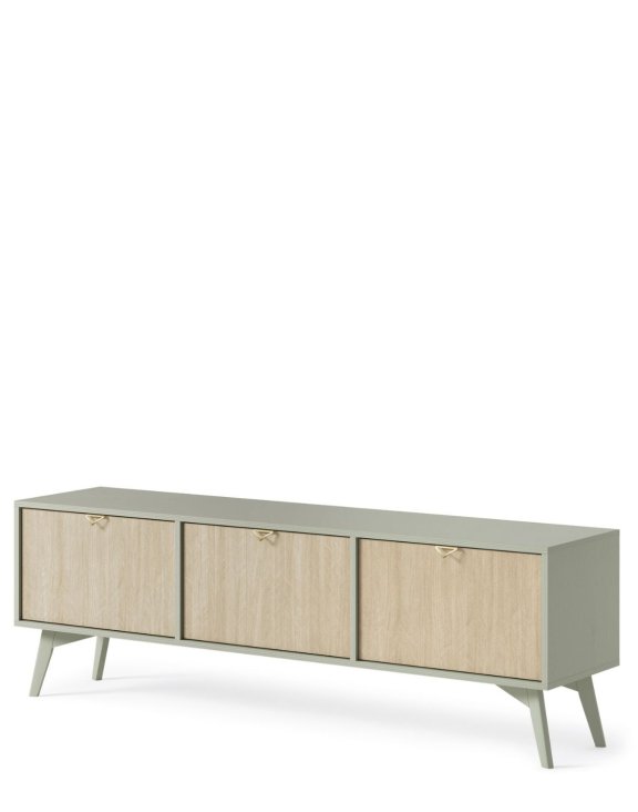 Comoda TV Forest de culoare verde eucalipt, de la Piaski, este o piesă de mobilier elegantă și funcțională, ideală pentru orice living în stil scandinav.