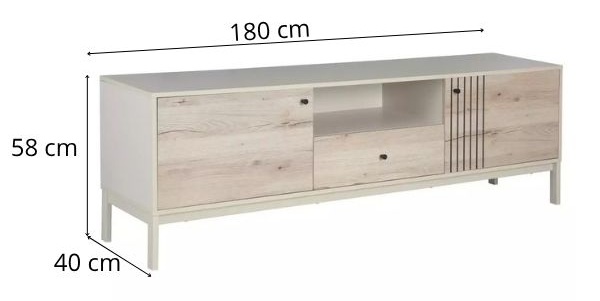 Comoda are o lungime de 180 cm, oferindu-ți spațiu suficient pentru televizor, consolă sau decorațiuni.