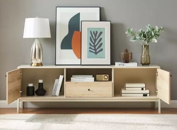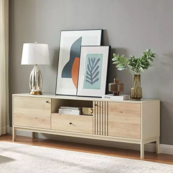Comoda TV Frost (L) de la Signal este combinația perfectă între designul minimalist și căldura finisajelor naturale.