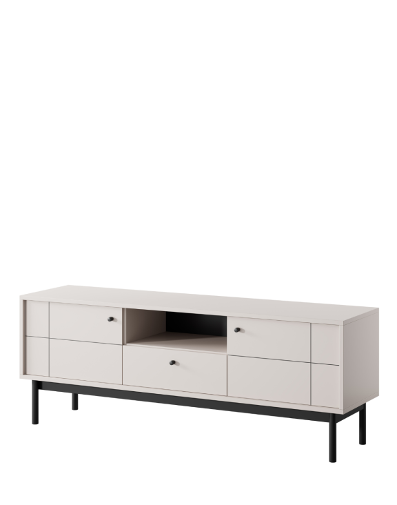 Comoda TV Japandi, în culoarea cașmir, de la Piaski este o piesă de mobilier unică, care combină estetica stilului japonez cu funcționalitatea modernă.
