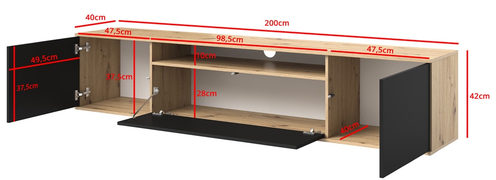 | Comodă TV cu picioare joase Logan, negru/stejar artizanal (200 cm) | 1146,87 RON |
