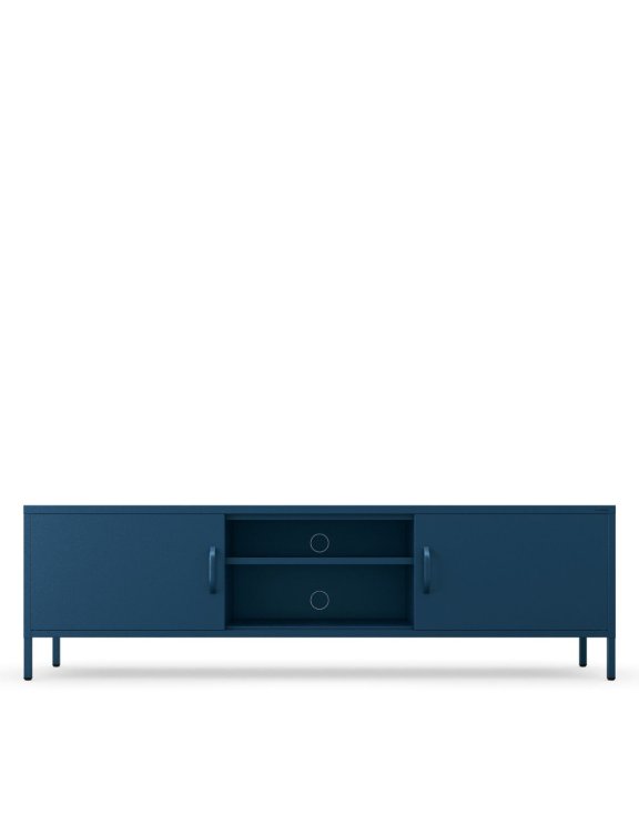Comoda TV metalică Rosaria XL (170 cm) de la Jan Nowak are un design stilat datorită bleumarinului dramatic și profund, care o transformă într-o piesă de efect.
