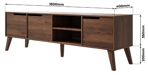 Comodă TV Nordelo (L) nuc warmia de la Karol este spațioasă, inspirată din stilul Mid-Century Modern și construită pentru a rezista în timp.