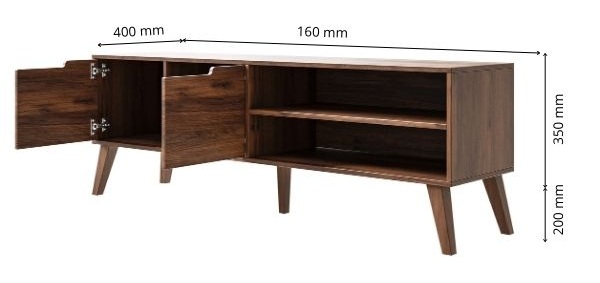 Datorită interiorului său atent proiectat, comoda oferă o funcționalitate sporită, cu două compartimente cu uși și două rafturi deschise care sunt ideale pentru depozitarea dispozitivelor multimedia, a colecțiilor de DVD-uri sau vinyl-uri etc.