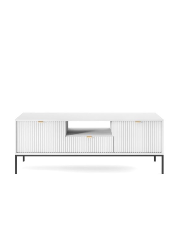 Comoda TV Nova albă de la Piaski este o piesă de mobilier elegantă și funcțională, perfectă pentru amenajările interioare moderne.
