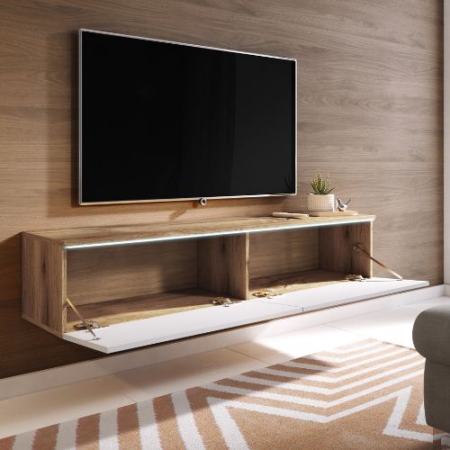 | Comodă TV suspendată/independentă Lowboard D, stejar wotan/alb lucios (140 cm) | 745 RON |