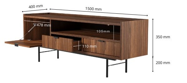 - Utilitate sporită - un compartiment spațios, două sertare practice și un raft deschis permit depozitarea convenabilă a dispozitivelor multimedia.