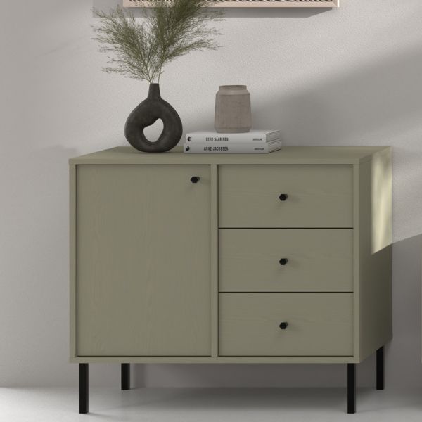 Comoda cu ușă și 3 sertare Tokyo 2, în culoarea verde eucalipt, de la Stolarz Lempert, va aduce un suflu nou în amenajarea casei tale.