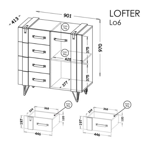 | Comodă cu ușă și 4 sertare Lofter Lo6, stejar wotan/beton millenium (90 cm) | 915,92 RON |