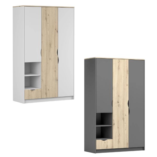 Disponibil în două variante cromatice versatile – alb/stejar artizanal și gri/stejar artizanal – dulapul se va integra perfect în orice amenajare interioară modernă.