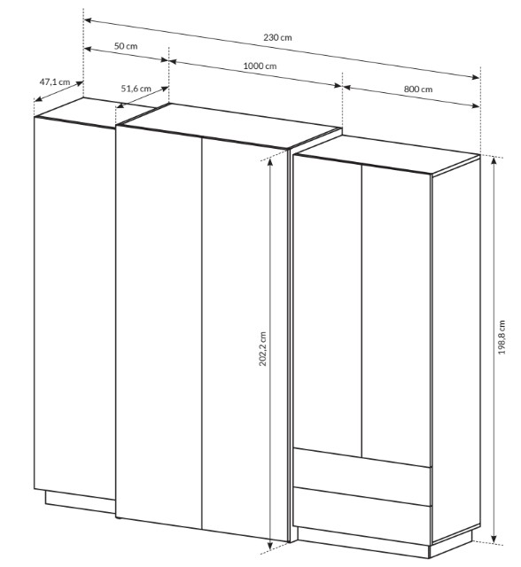 Dispune de un design funcțional, cu uși care ascund rafturi interioare și sertare compacte pe glisiere cu bile, fiind astfel o soluție inteligentă de depozitare.