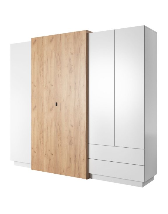 Dulap 3D cu 5 uși și 2 sertare, alb/stejar artizanal