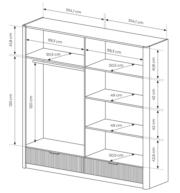 Modelul a fost gândit ca o soluție practică de depozitare, oferind organizare facilă pentru haine și obiecte personale prin două compartimente cu ușă și rafturi interioare, precum și prin trei sertare ușor accesibile.