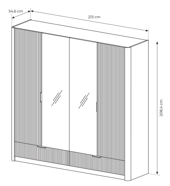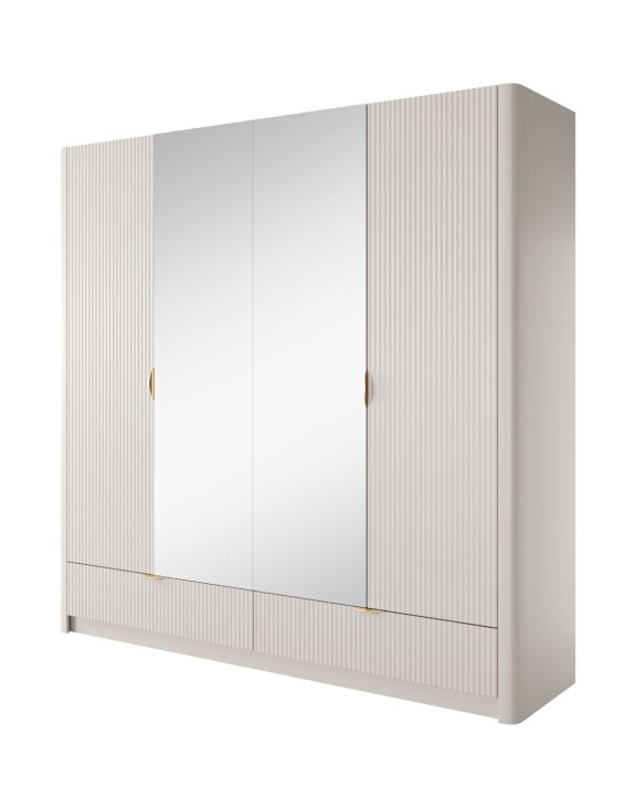 Dulap cu 4 uși și 2 sertare Lante, bej/auriu (213 cm)