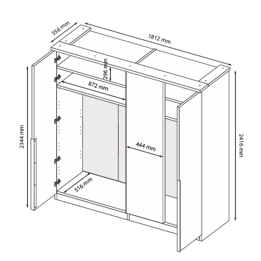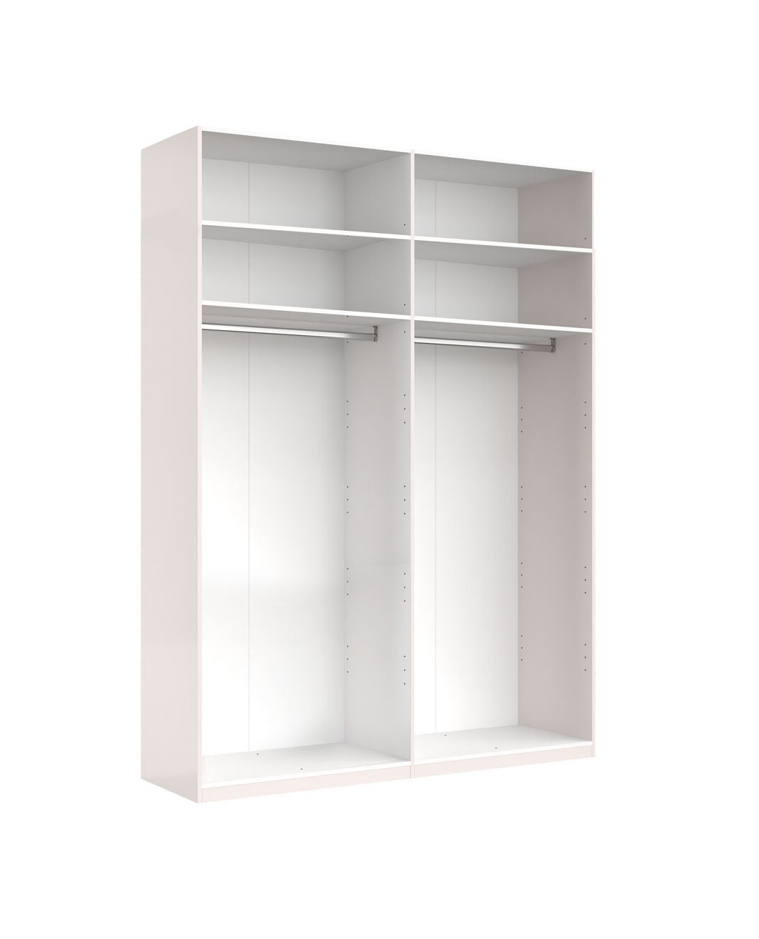 Interiorul dulapului a fost conceput pentru a facilita organizarea hainelor și a accesoriilor, având două secțiuni de aceeași lungime prevăzute cu bare pentru umerașe și rafturi practice.