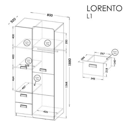 | Dulap pentru camera copiilor Lorento L1, alb/stejar nash (80 cm) | 1138,68 RON |