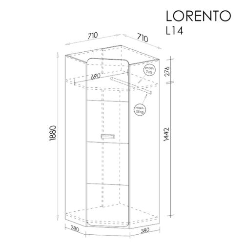 Interiorul generos găzduiește un raft rezistent, capabil să susțină până la 7 kg, locul ideal pentru coșurile de organizare sau cutiile cu amintiri. Acesta este completat de o bară pentru umerașe, concepută să protejeze textilele delicate și să mențină fiecare ținută impecabilă, pregătită pentru o nouă zi.