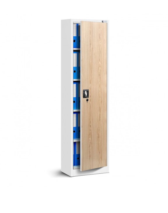 Dulapul metalic cu o singură ușă Alex, cu dimensiunea de 45 x 185 cm, în culorile alb și stejar sonoma, este o piesă de mobilier rezistentă și versatilă, ce se va potrivi în spații de dimensiuni mari, dar și mici.