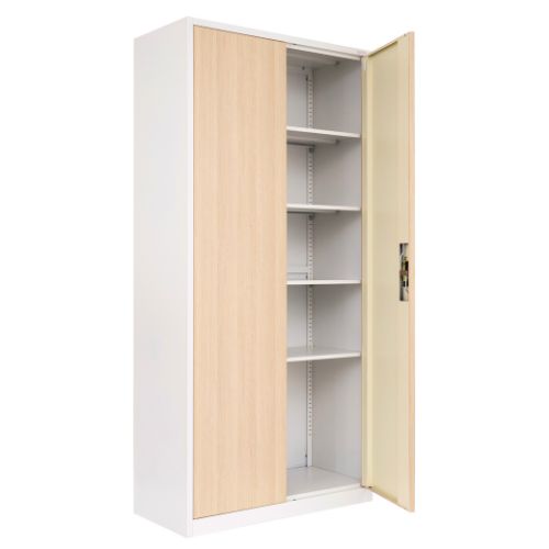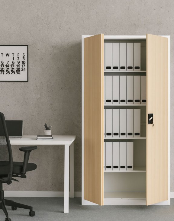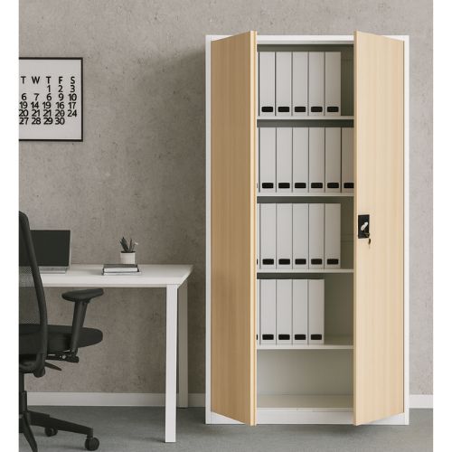 Dulapul metalic Geneva alb/stejar sonoma de la Storfy este soluția de stocare ideală pentru dosare, documente, rechizite sau chiar unelte.