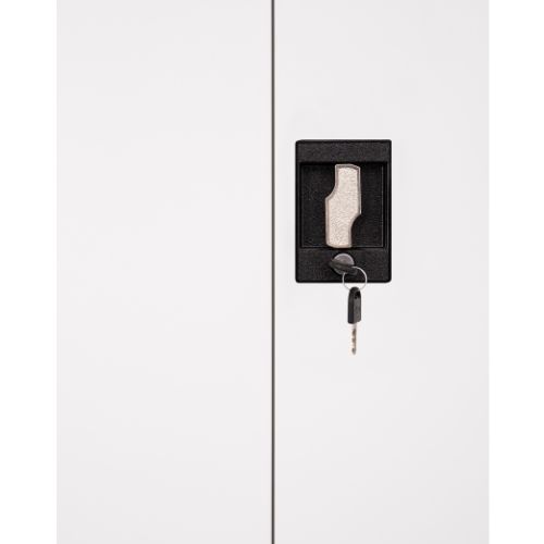 Dulapul se închide cu un sistem de blocare cu came, care protejează conținutul său împotriva accesului neautorizat. Setul include două chei, astfel încât să ai întotdeauna una la îndemână și să o poți păstra pe cealaltă ca rezervă. Acest fapt îți garantează o utilizare zilnică sigură.