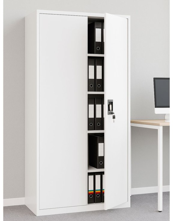 Dulapul metalic Geneva alb de la Storfy este soluția de stocare ideală pentru dosare, documente, rechizite sau chiar unelte.