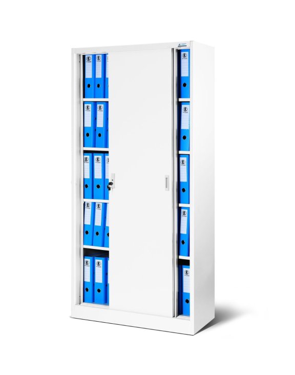 Dulapul metalic Kuba cu uși glisante, în culoarea alb, de la Jan Nowak este o piesă de mobilier fundamentală pentru birouri, clinici, școli, universități sau alte instituții.