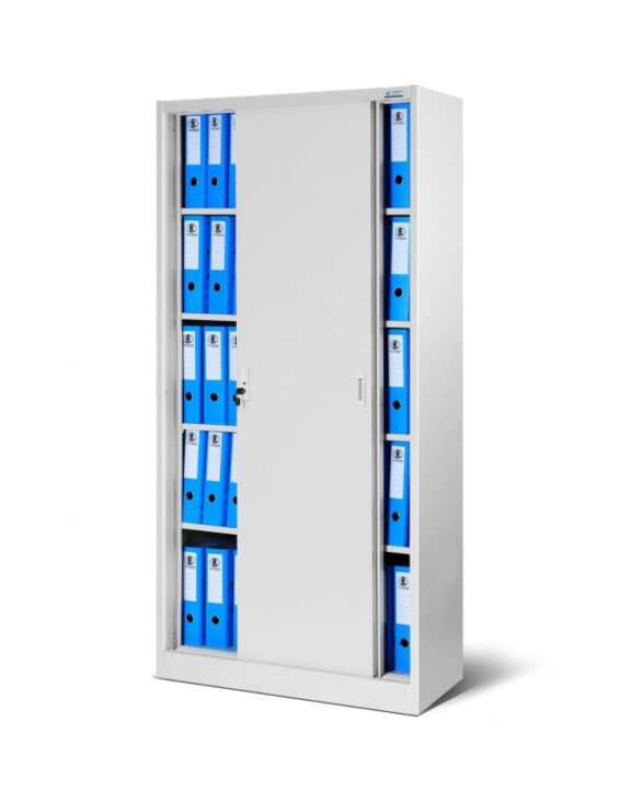 Dulapul metalic Kuba cu uși glisante, în culoarea gri, de la Jan Nowak este ideal pentru birouri, cabinete medicale, ateliere, școli sau alte instituții.
