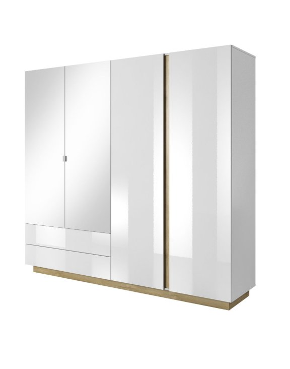 Dulap cu oglindă, 4 uși și 2 sertare Arco, alb/stejar grandson
