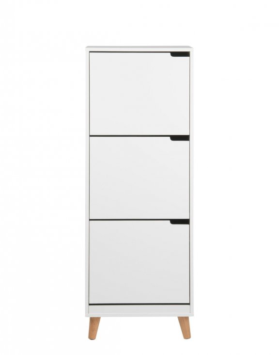 Dulapul de pantofi Mitra de la Actona, în culoarea albă, este conceput pentru spațiile de dimensiuni reduse, ajutând la păstrarea încălțămintei în mod ordonat.