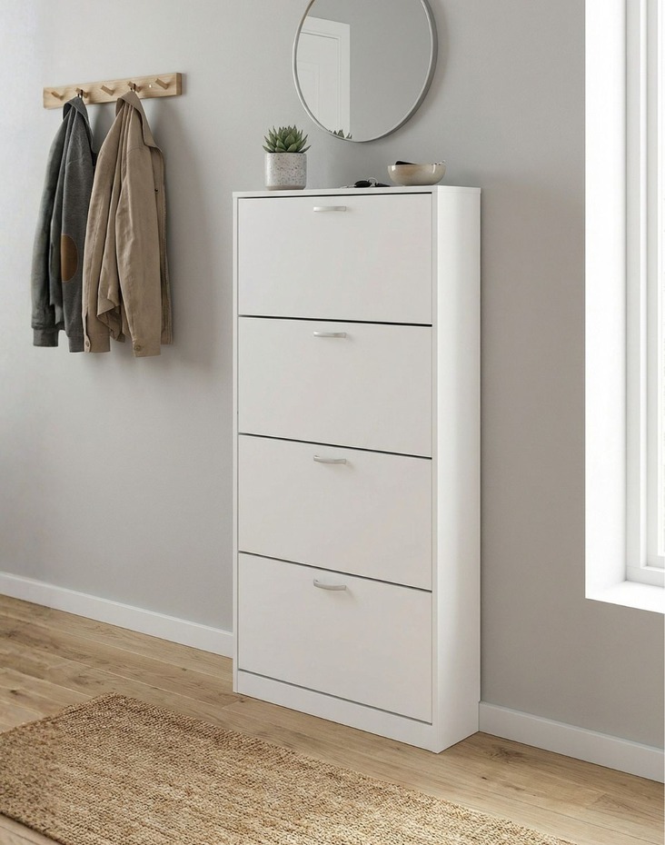 Dulapul de pantofi Rivo White de la Avida Design este o soluție practică și elegantă pentru holul de la intrare, concepută special pentru cei care își doresc un spațiu bine organizat.