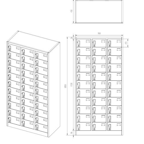 Dulapul are 33 de spații de depozitare. Acestea sunt prevăzute cu încuietori cu câte două rânduri de chei.