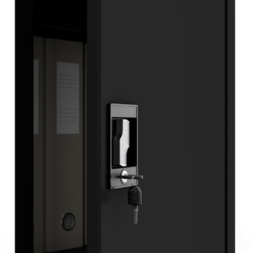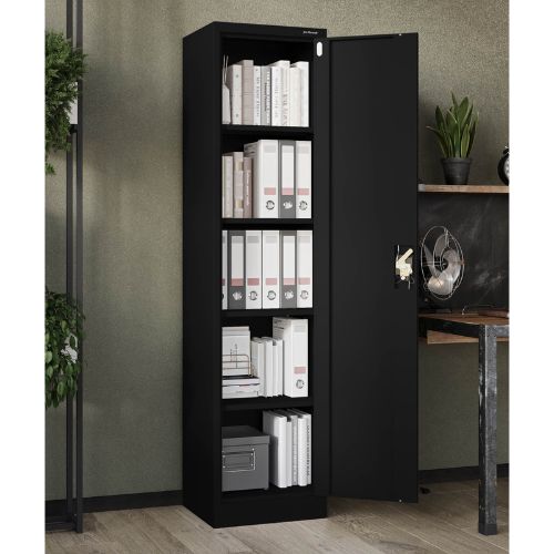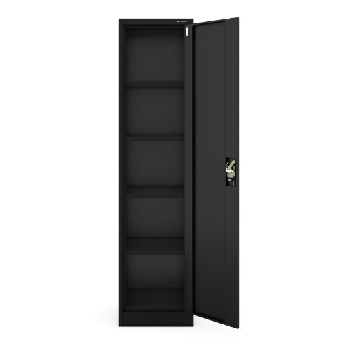 Dulapul metalic cu o singură ușă Alex, cu dimensiunea de 45x185 cm, în culoarea neagră, este excelent pentru birouri, saloane de înfrumusețare, clinici sau ateliere, dar și pentru locuințe.